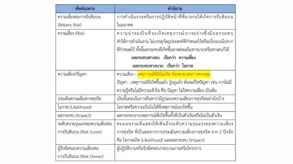 O20 การประเมินความเสี่ยงต่อการรับสินบน