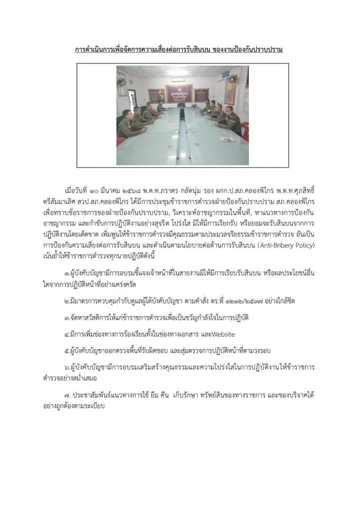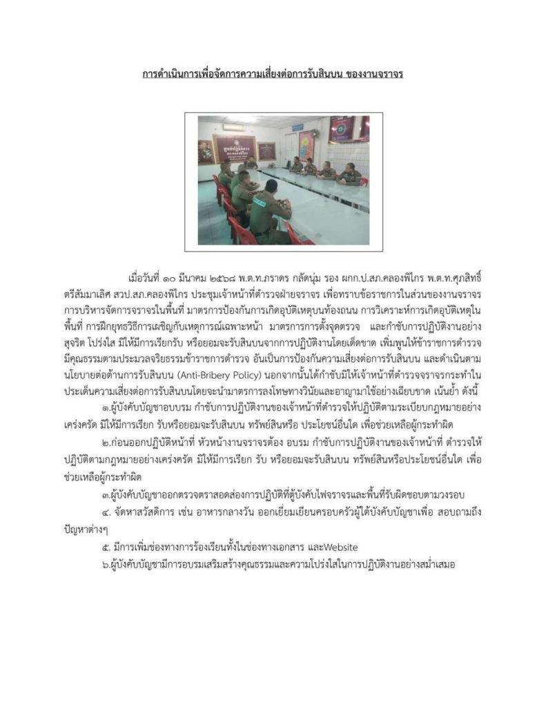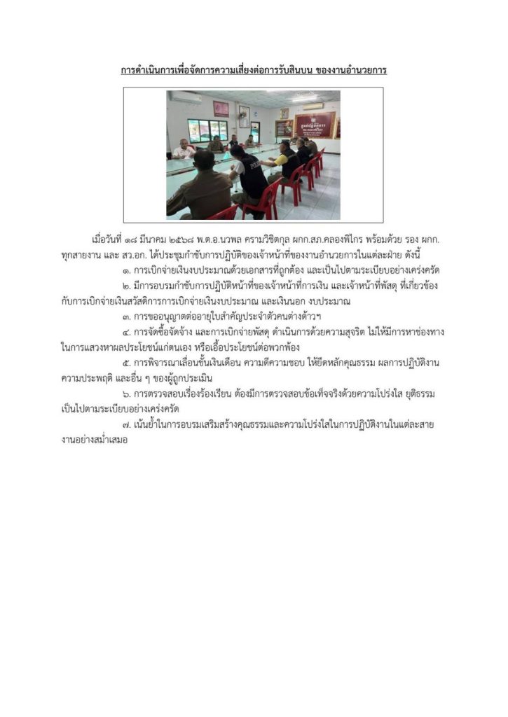 ภาพกิจกรรมการดำเนินการตามมาตรการจัดการความเสี่ยงต่อการรับสินบน
