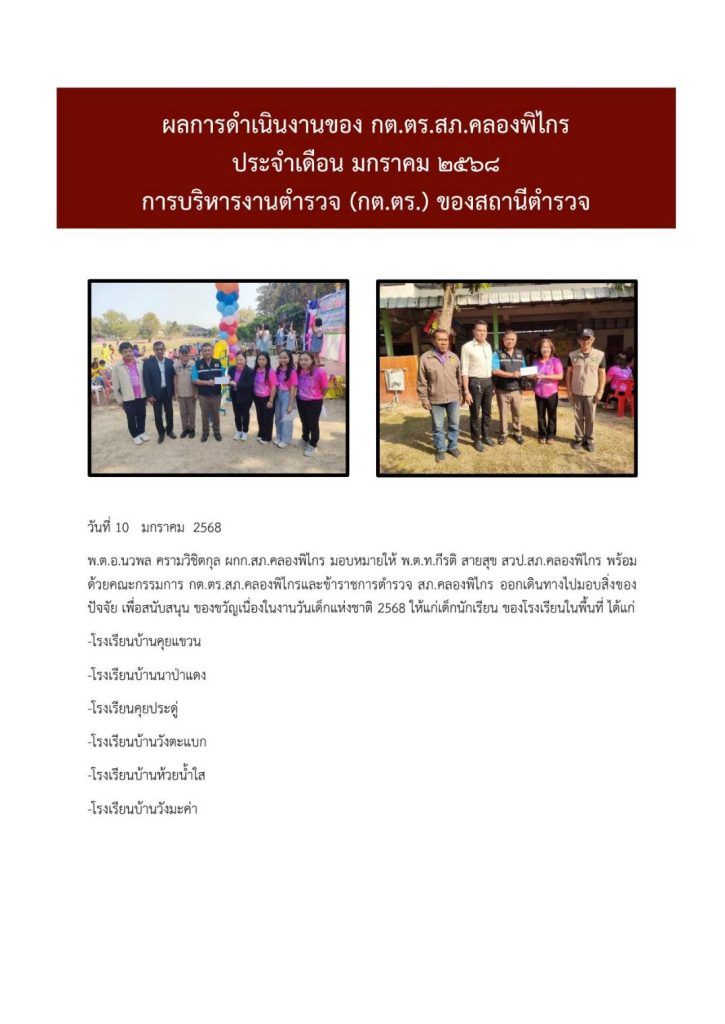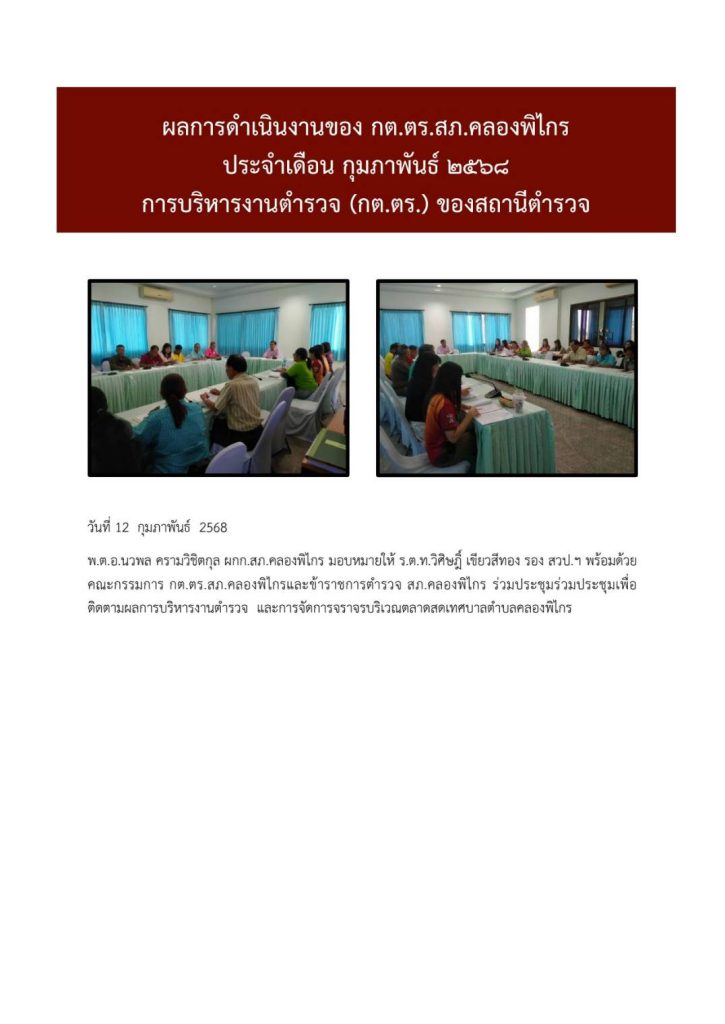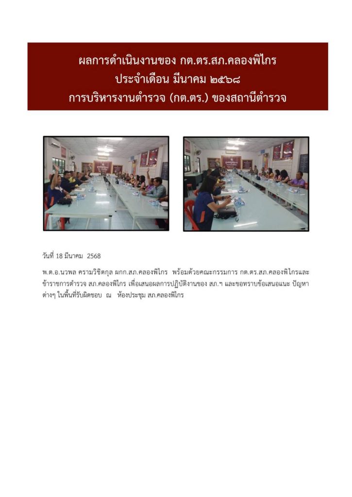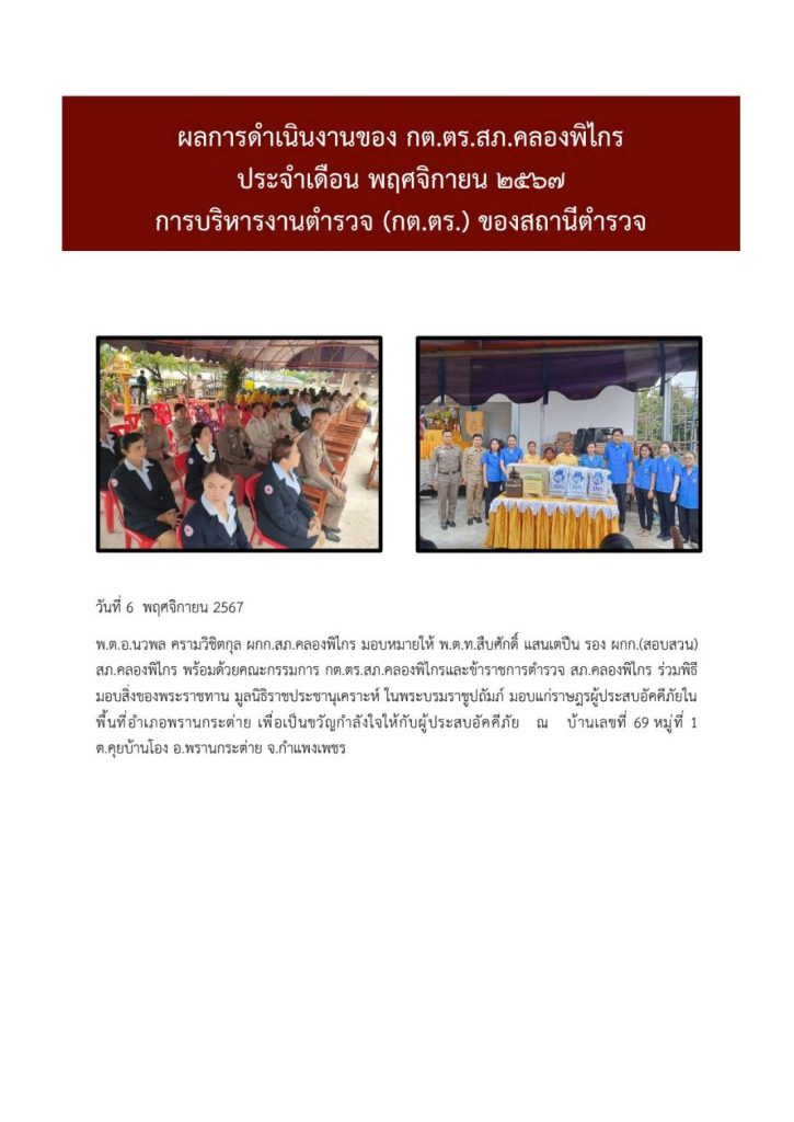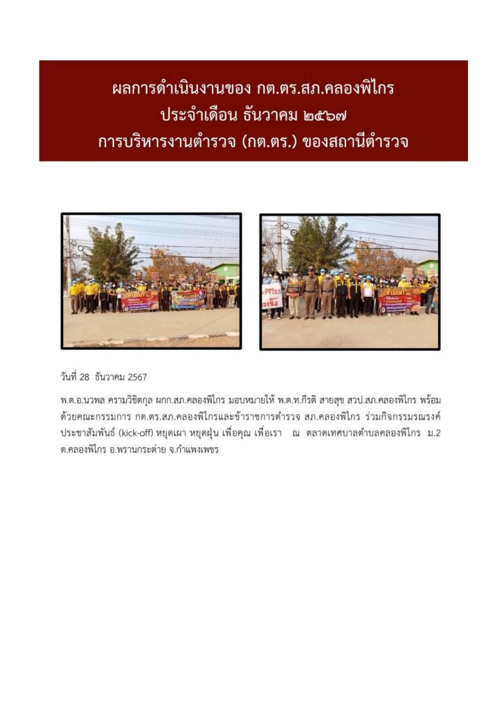 ผลการดำเนินงาน กต.ตร. สภ.คลองพิไกร